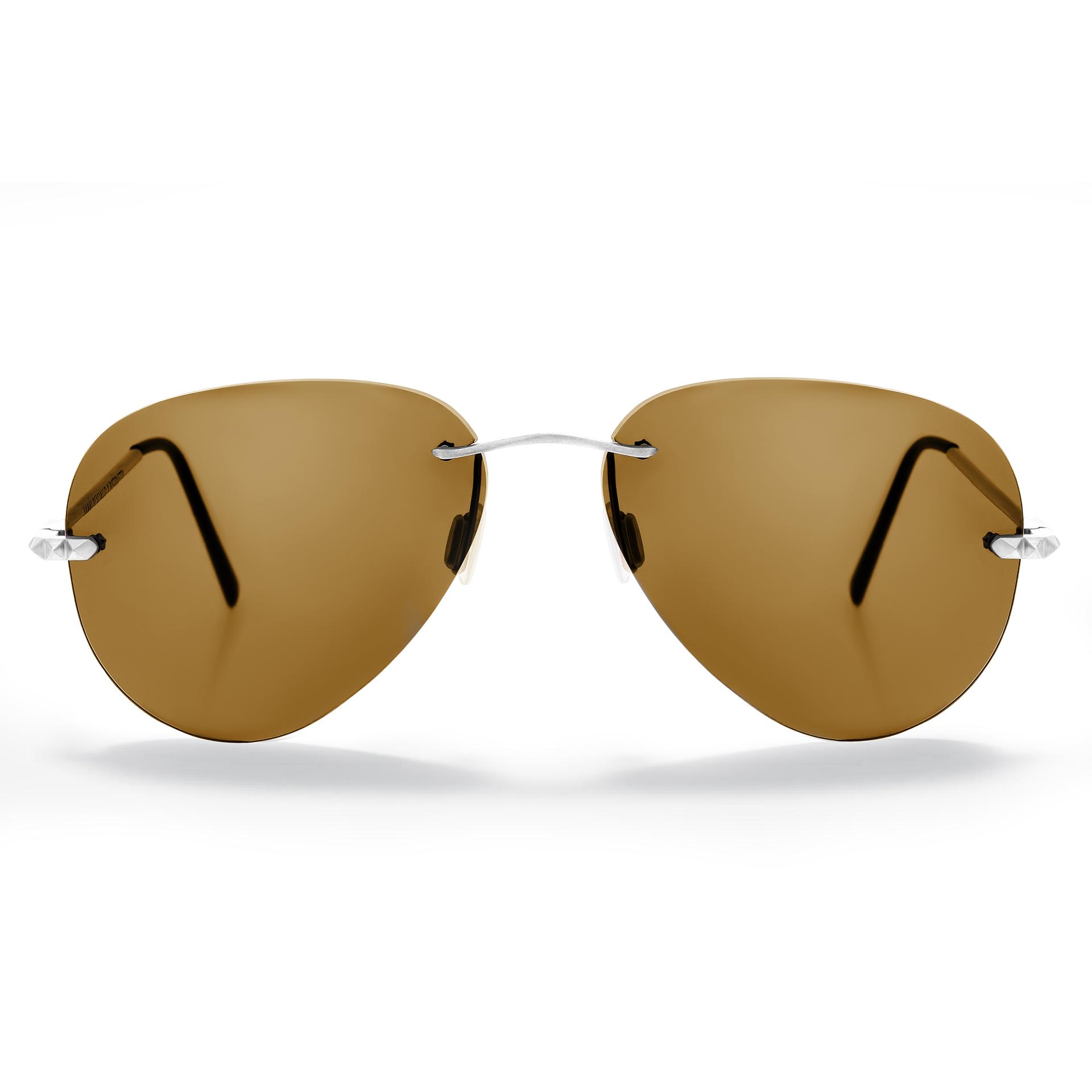 Modello di occhiali “Pilot” da sole a goccia della collezione “Iratus” con lenti Marroni. Contattaci per realizzare il tuo occhiale su misura.